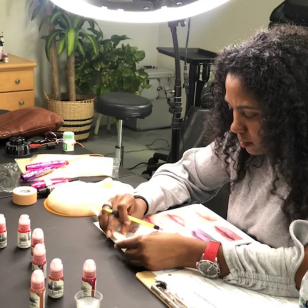 Bubble lips are a form of lip blushing. We purposefully focus on making the vermillion border the densest part of the lips, then gently lightening the pigment toward the middle. The results create the illusion of fuller lips without filler. This is the modern lip liner tattoo.